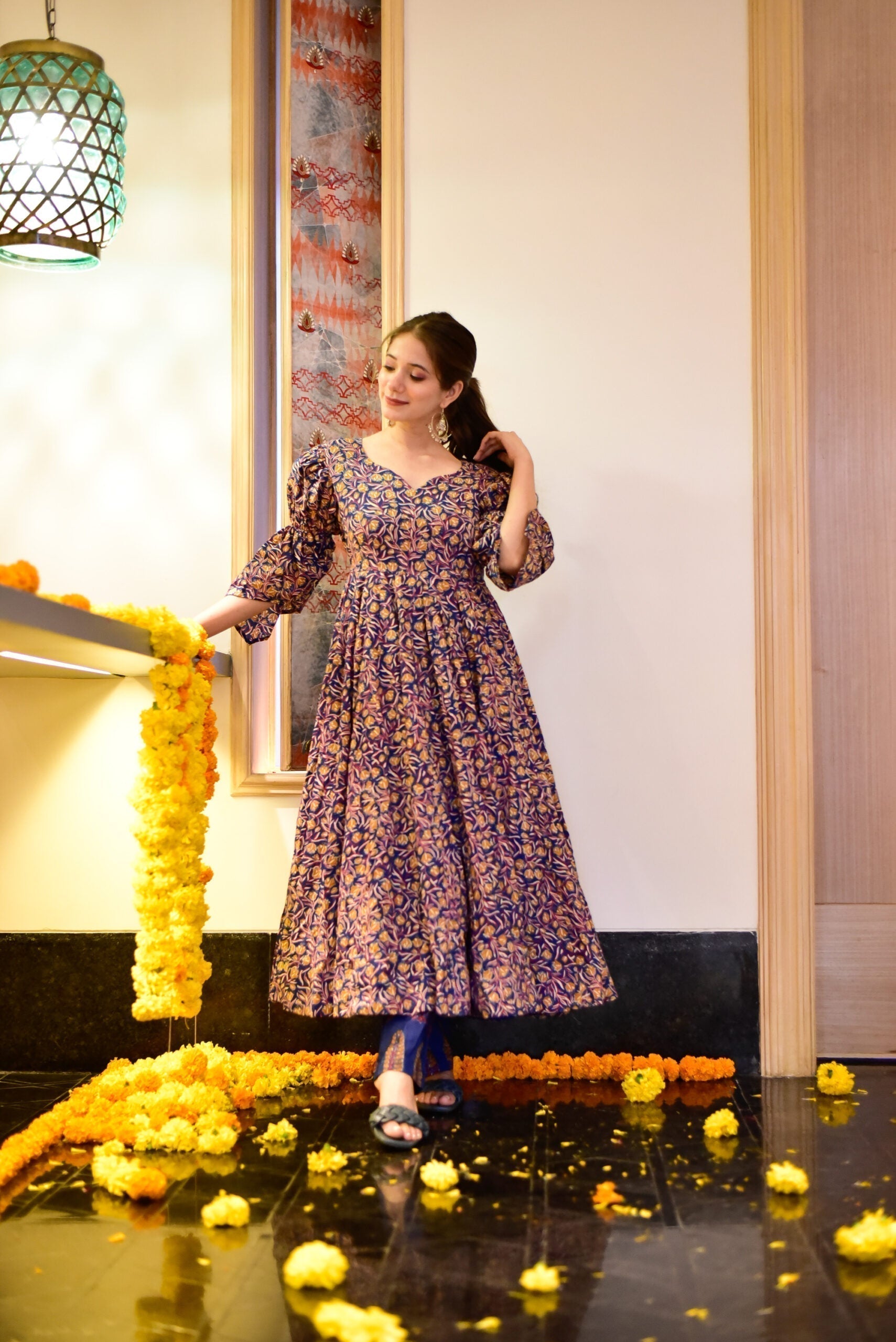 Look adorable as you adorn this ravishing flared suit set beautified with graceful prints all over, team this fit with your smile, some minimal jewels and you’re good to slay the party.!