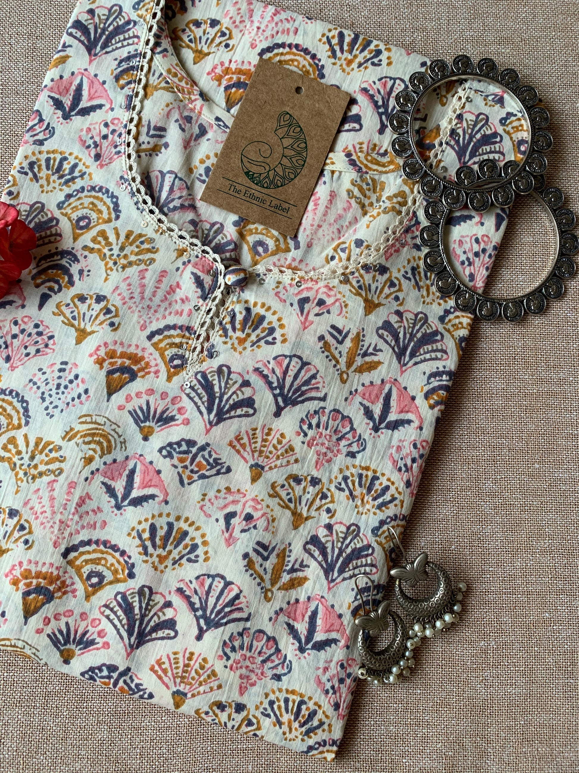"Gulmohar" Peach Grey Cotton Kurta