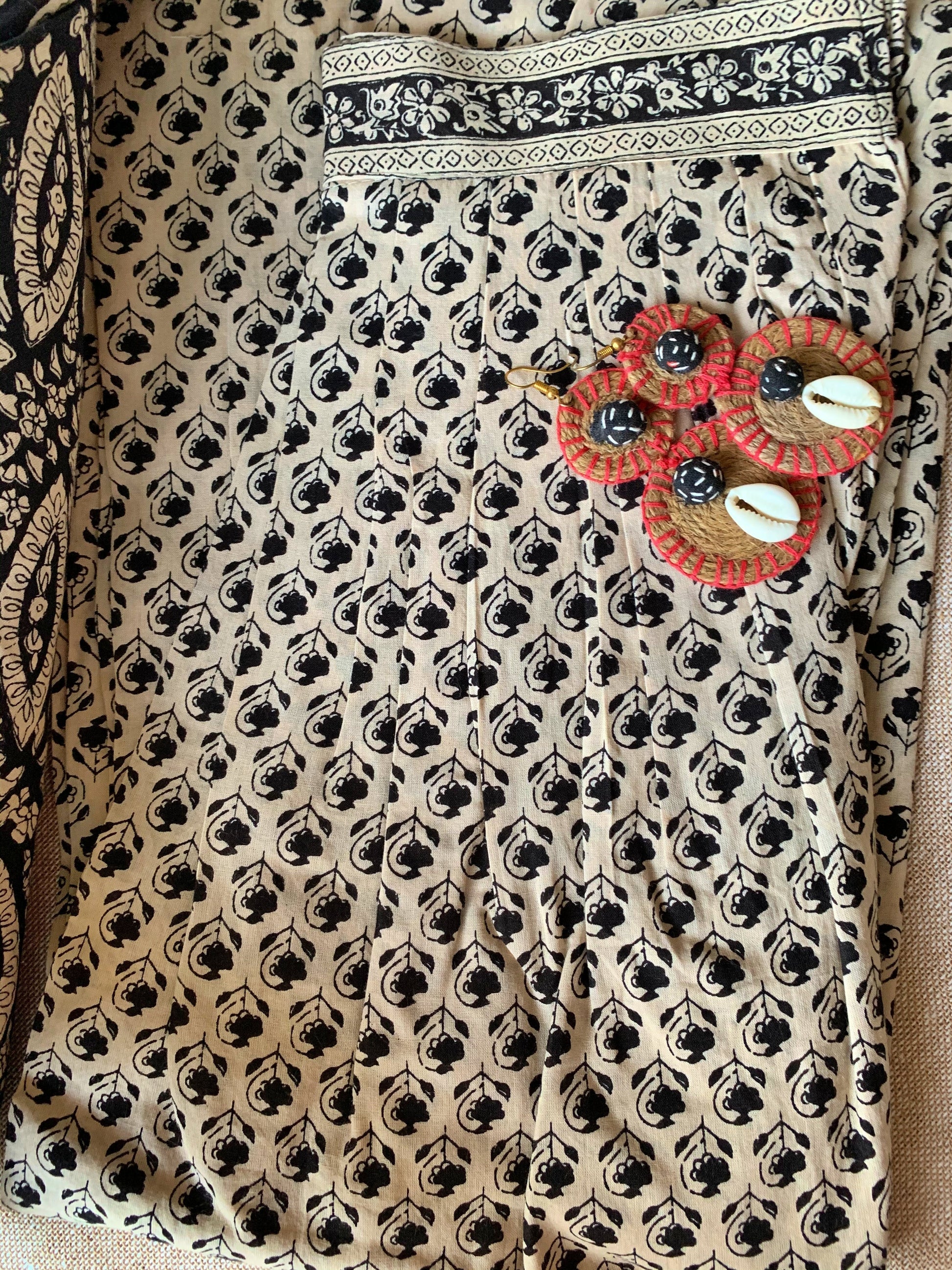 Minimal, classic and chic, this kurta set is designed for all the days you want to keep things special and subtle. Inspired by the art of Hand Block Printing, this kurta is a piece of art. The kurta comes with Ajrakh print, hand embroidery, afghan pants & cotton dupatta.