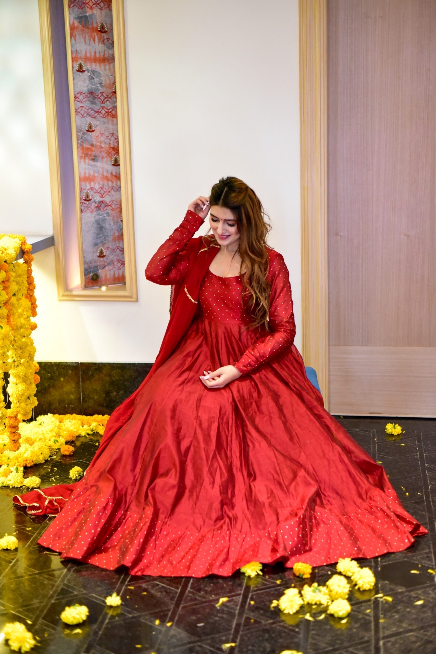 Set your fashion statement to royal as you carry yourself in this elegant ethnic, stunner maroon chanderi floor length dress.!
