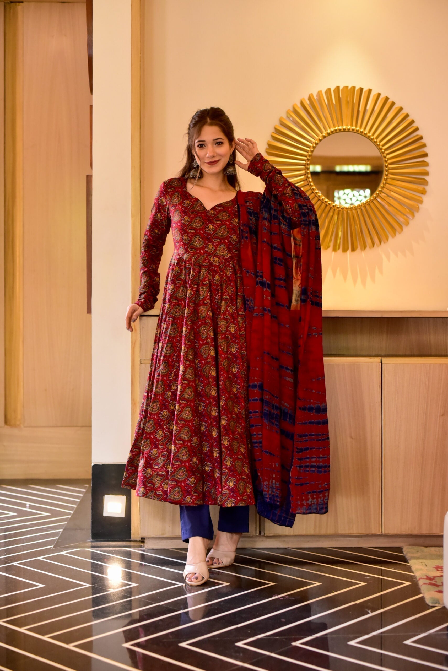Look beautiful as you carry yourself in this pretty festive attire from idaho’s ethnic collection of rich suits!