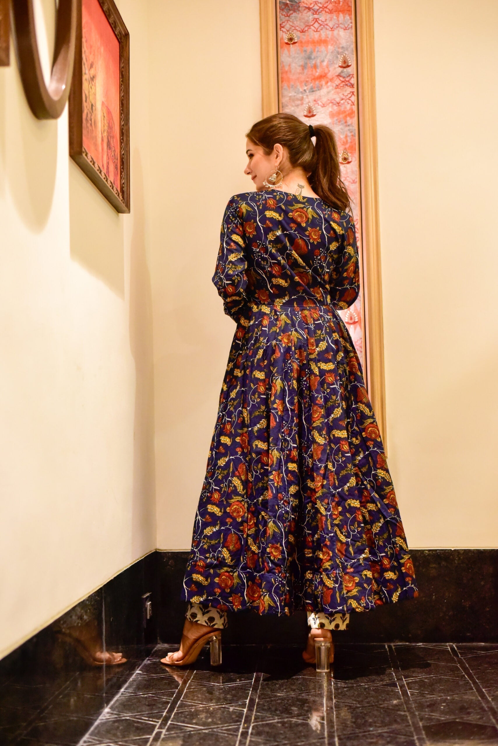 Adorn yourself in this graceful flared kurti paired with pants.!