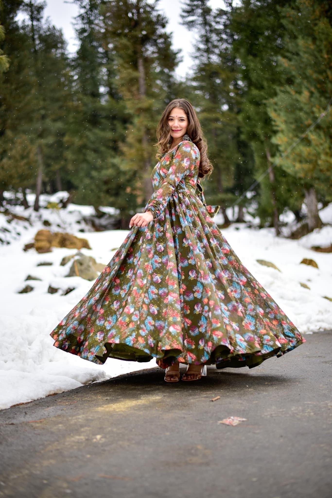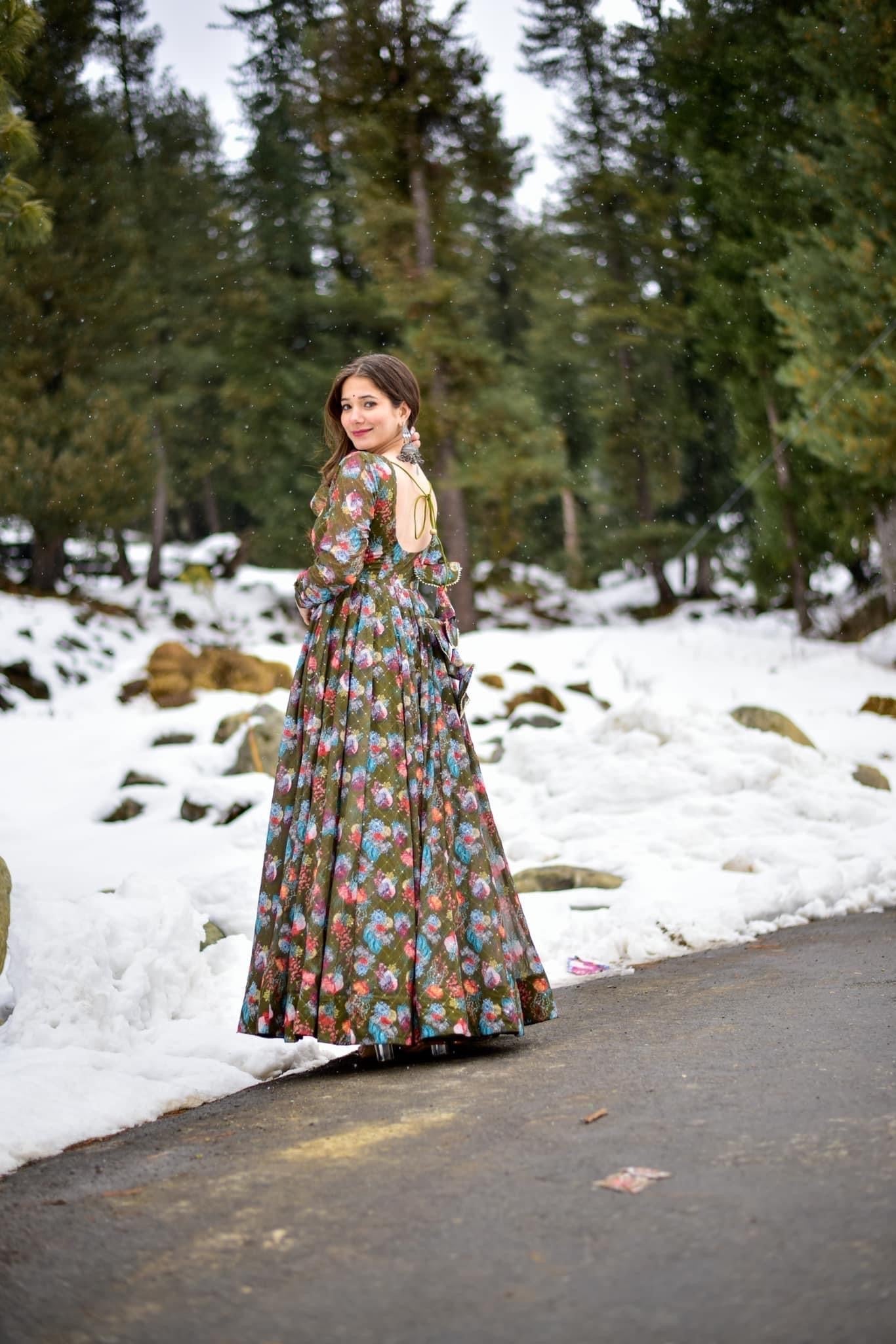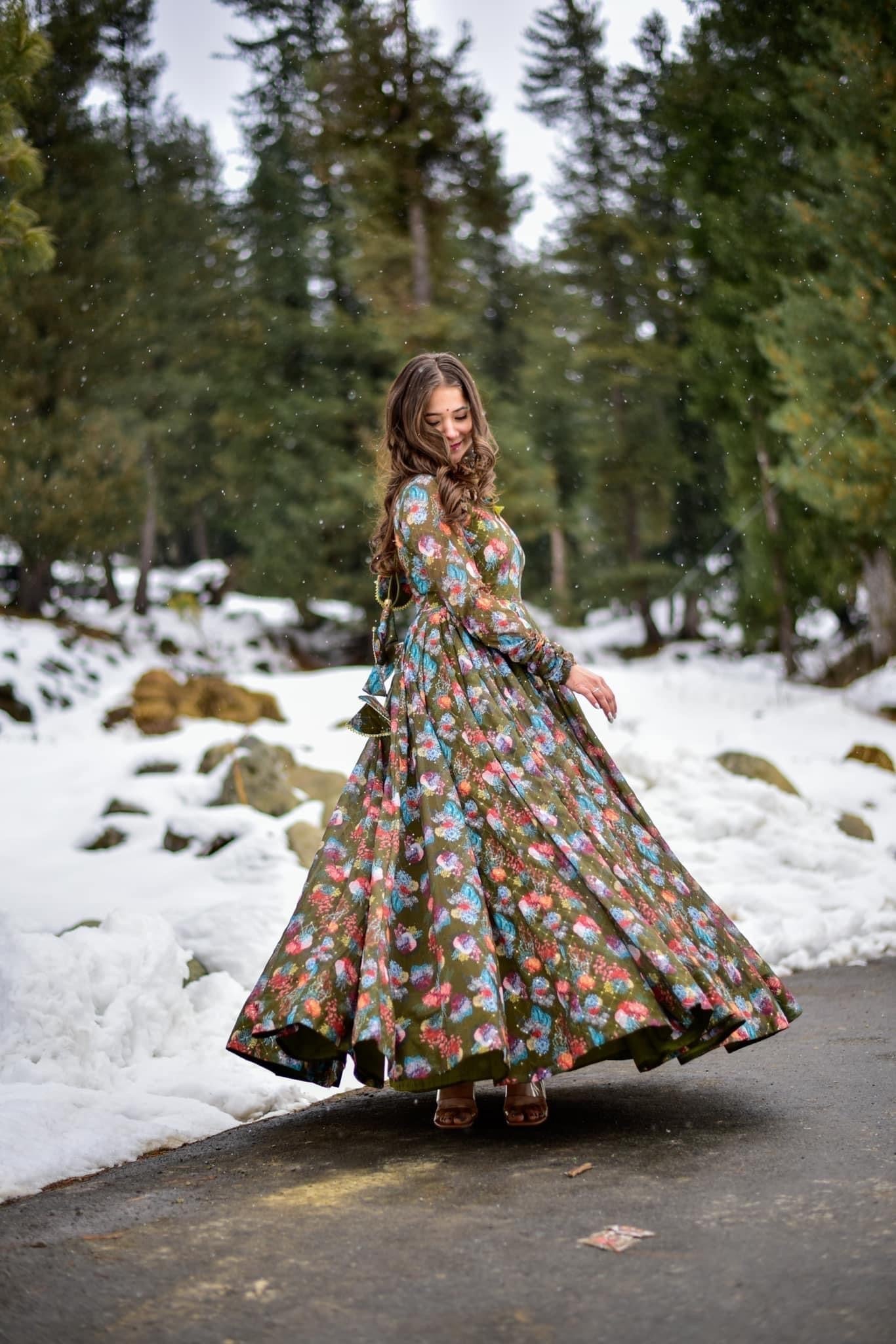 olive green georgette embroidered maxi