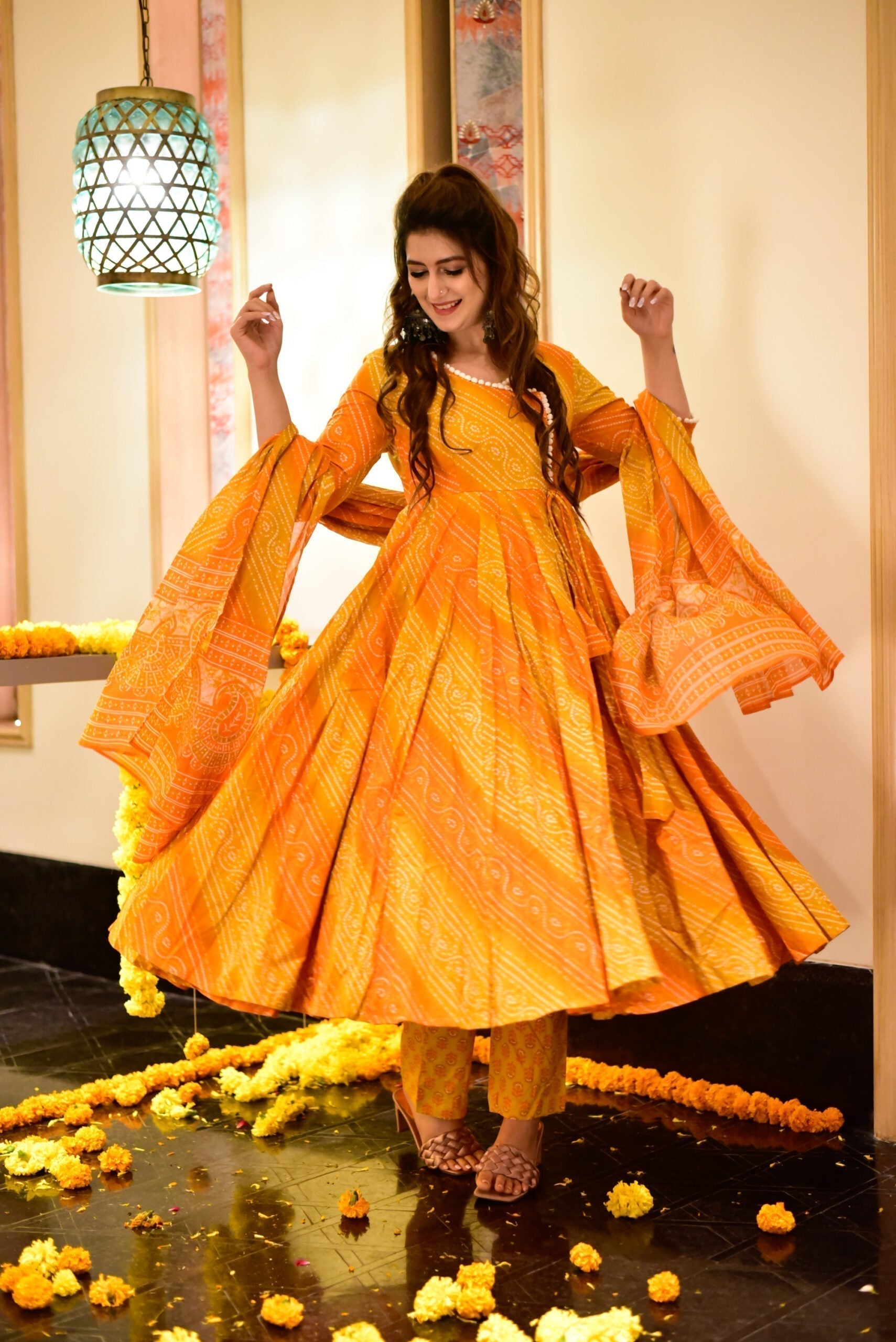 Grab this ravishing dual-colour printed suit set and feel gorgeously festive ready..
