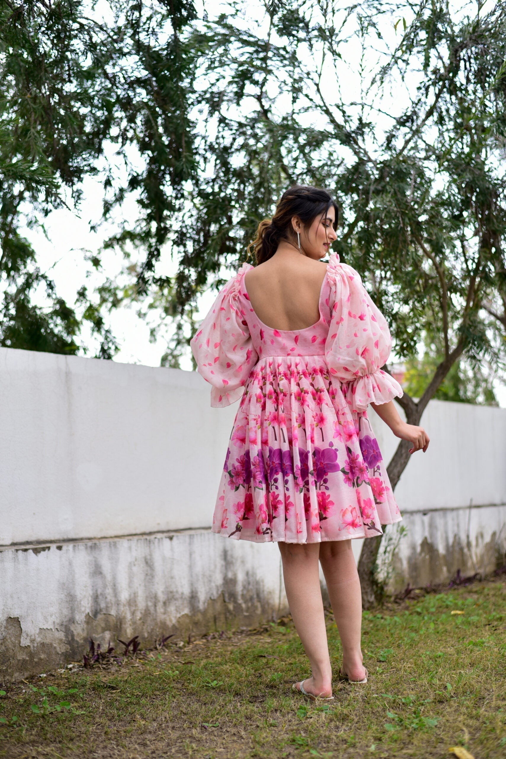 pink puff chanderi dress