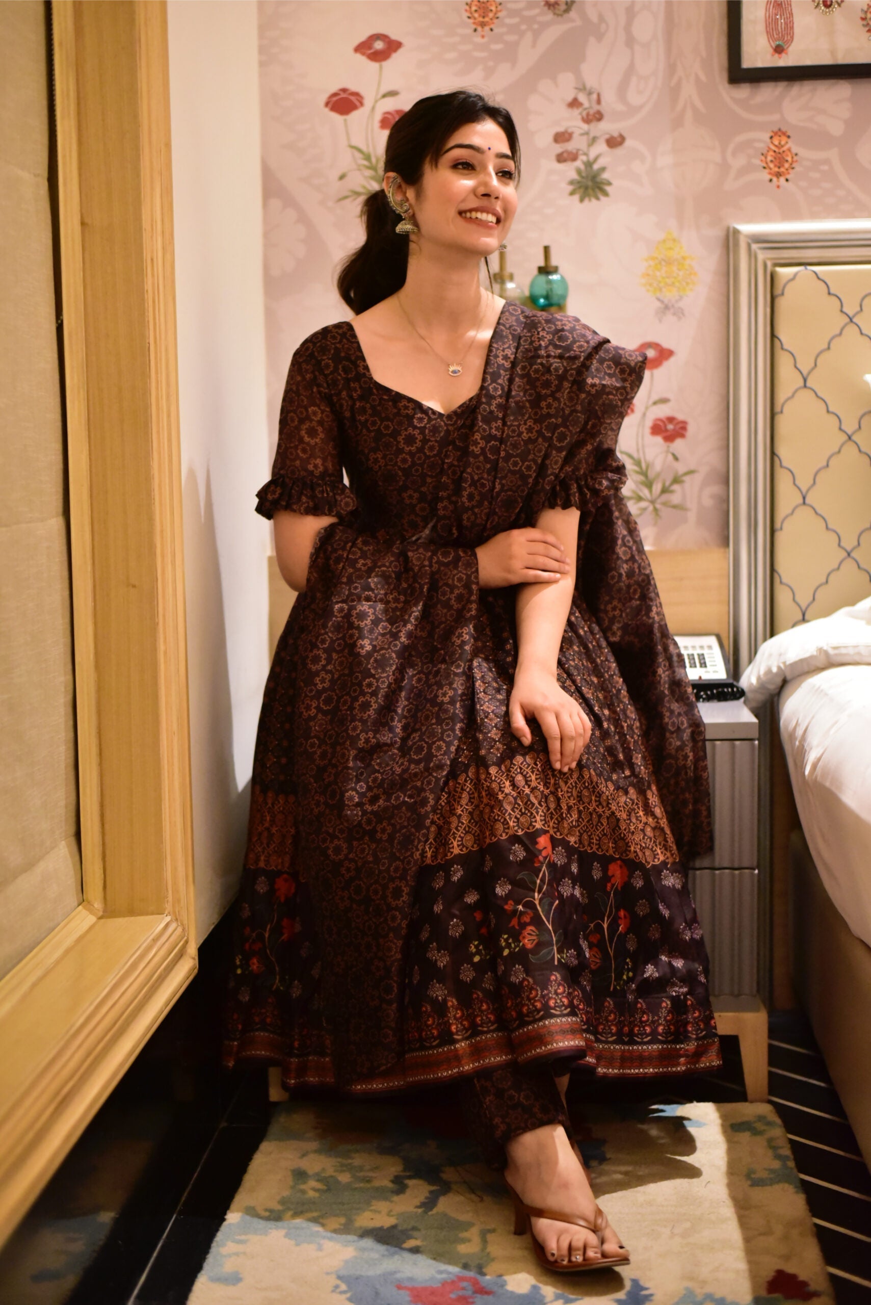 poornima brown chanderi suit set
