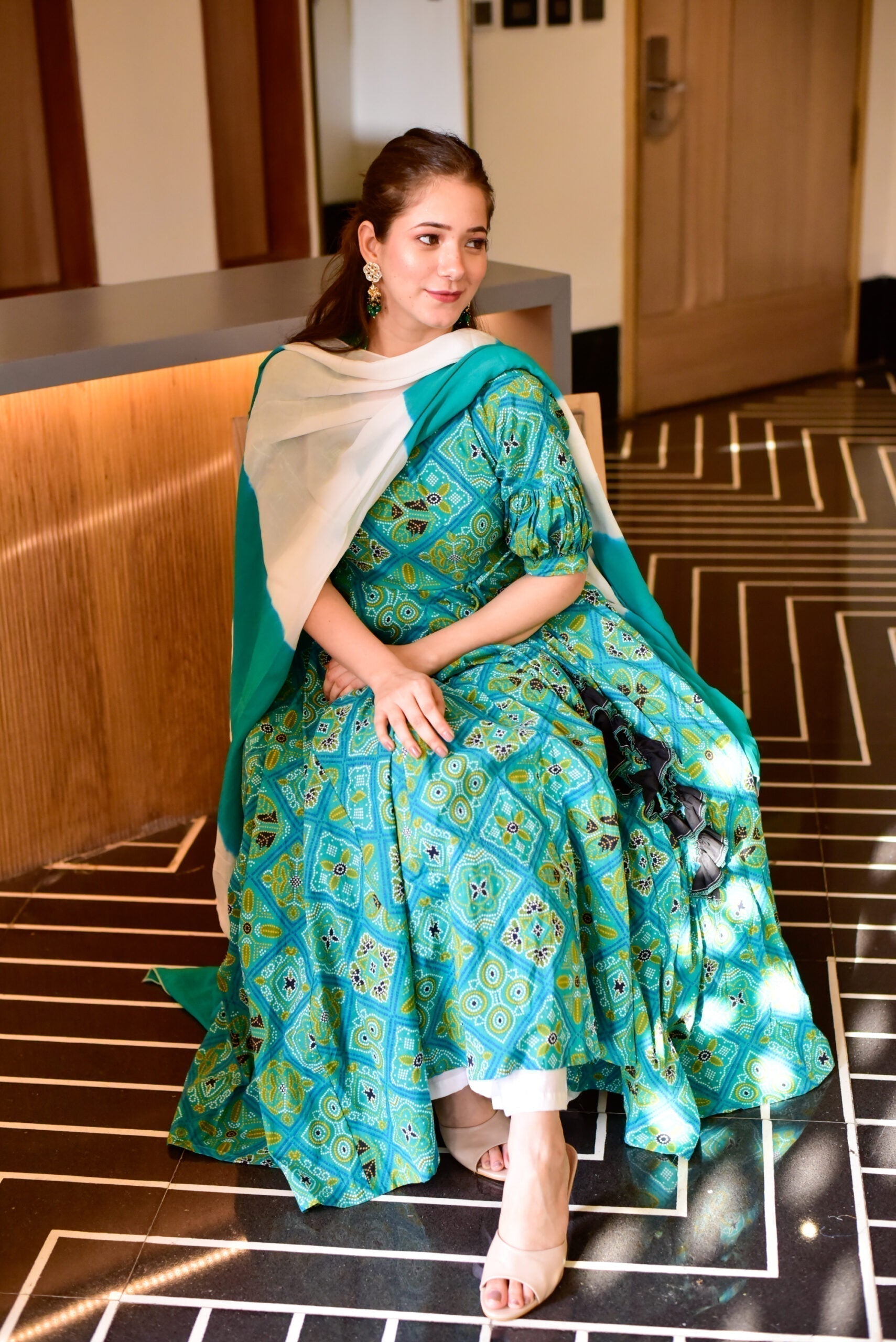 sowjanya green bandhej suit set